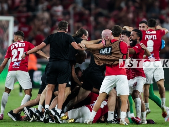 FBL-ISR Leumit League Matchday 3 – Hapoel Tel Aviv (in red and white) vs. Beitar Jerusalem (in black with a yellow stripe), September 15, 2025, Tel Aviv, Israel.