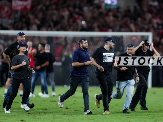 FBL-ISR Leumit League Matchday 3 – Hapoel Tel Aviv (in red and white) vs. Beitar Jerusalem (in black with a yellow stripe), September 15, 2025, Tel Aviv, Israel.