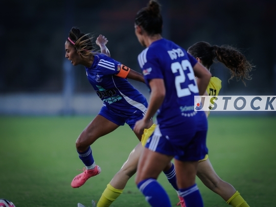 FBL-ISR Ligat Ha'Al Nashim Matchday 1 – Maccabi Kishronot Hadera (in yellow) vs. Hapoel Petah Tikva (in blue), September 12, 2024, Hadera, Israel.