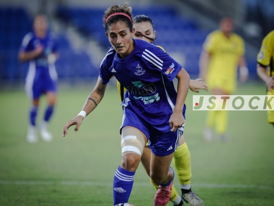 FBL-ISR Ligat Ha'Al Nashim Matchday 1 – Maccabi Kishronot Hadera (in yellow) vs. Hapoel Petah Tikva (in blue), September 12, 2024, Hadera, Israel.