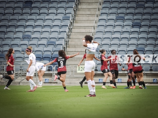 FBL-ISR Ligat HaAl Nashim, Matchday 26 Hapoel Katamon Jerusalem in red and black vs. M.S. Kiryat Gat in white May 15, 2025 Teddy Stadium, Jerusalem, Israel (Photo by Alexander Bukh / JStock)