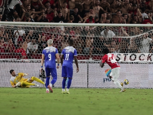 FBL-ISR Premier League Matchday 1 – Hapoel Tel Aviv (in red) vs. Ironi Kiryat Shmona (in blue), August 23, 2025, Tel Aviv, Israel