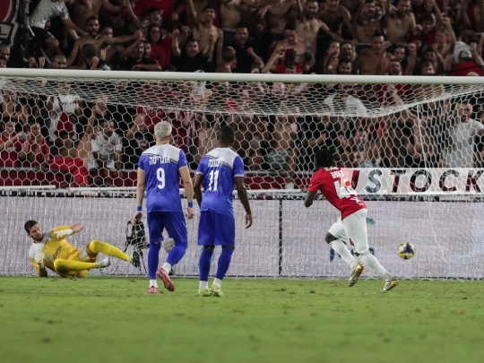 FBL-ISR Premier League Matchday 1 – Hapoel Tel Aviv (in red) vs. Ironi Kiryat Shmona (in blue), August 23, 2025, Tel Aviv, Israel