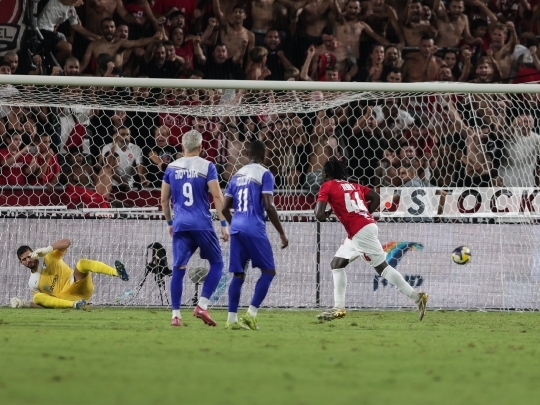 FBL-ISR Premier League Matchday 1 – Hapoel Tel Aviv (in red) vs. Ironi Kiryat Shmona (in blue), August 23, 2025, Tel Aviv, Israel