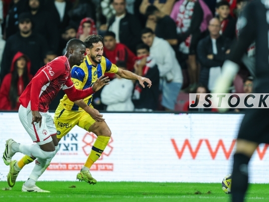 FBL-ISR Premier League – Hapoel Be'er Sheva (in red) vs. Maccabi Tel Aviv (in yellow), December 7, 2025, Beer Sheva, Israel.
