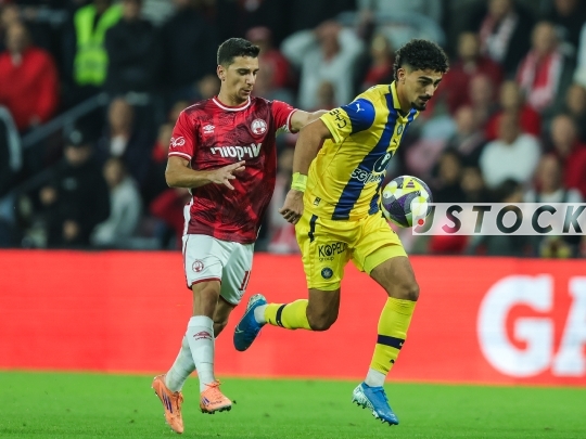 FBL-ISR Premier League – Hapoel Be'er Sheva (in red) vs. Maccabi Tel Aviv (in yellow), December 7, 2025, Beer Sheva, Israel.