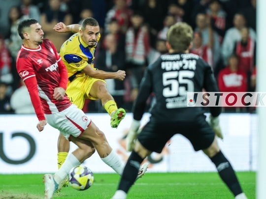 FBL-ISR Premier League – Hapoel Be'er Sheva (in red) vs. Maccabi Tel Aviv (in yellow), December 7, 2025, Beer Sheva, Israel.