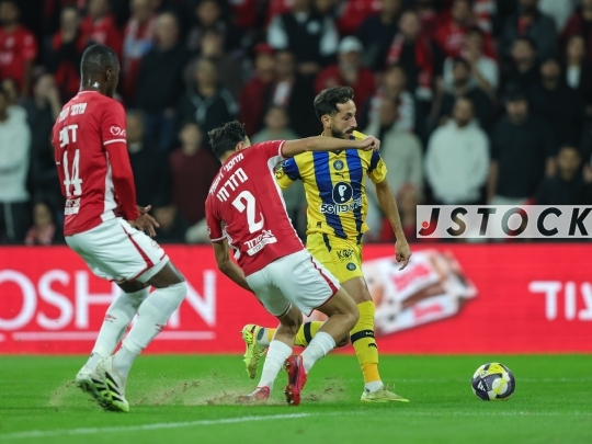 FBL-ISR Premier League – Hapoel Be'er Sheva (in red) vs. Maccabi Tel Aviv (in yellow), December 7, 2025, Beer Sheva, Israel.