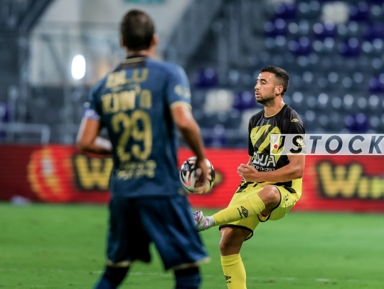 FBL-ISR Premier League Matchday 5 – Maccabi Bnei Reineh (in blue) vs. Beitar Jerusalem (in yellow and black), September 28, 2024, Tel Aviv, Israel.