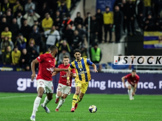 FBL-ISR State Cup Winner Round of 16 Hapoel Tel Aviv in red vs. Maccabi Tel Aviv in yellow, January 14, 2026, Tel Aviv, Israel.Photo by Shaul Greenfeld JStock