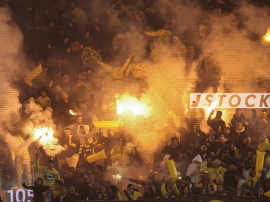 FBL-ISR State Cup Winner Round of 16 Hapoel Tel Aviv in red vs. Maccabi Tel Aviv in yellow, January 14, 2026, Tel Aviv, Israel.Photo by Shaul Greenfeld JStock