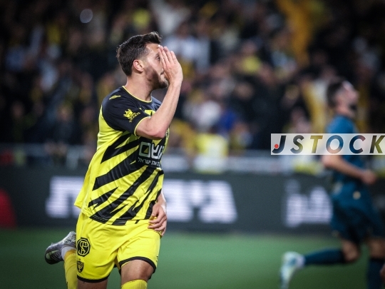 FBL-ISR State Cup Semi-final – Beitar Jerusalem (in yellow and black) vs Maccabi Bnei Reineh (in blue) – April 10, 2025 – Tel Aviv