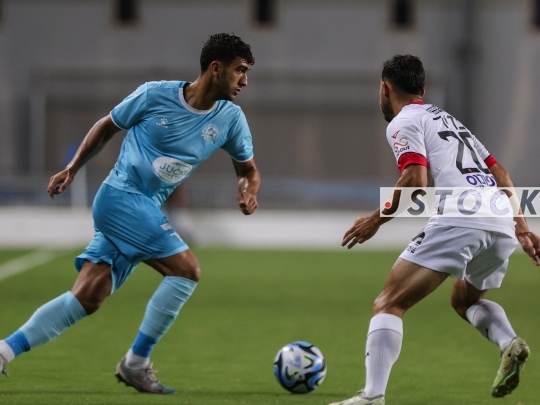 Toto Cup, Group B, Matchday 4 Maccabi Petah Tikva in light blue vs. Hapoel Jerusalem in white and red August 8, 2023 Petah Tikva, Israel. (Photo by Shaul Greenfeld / JStock)