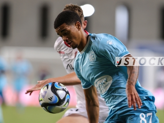 Toto Cup, Group B, Matchday 4 Maccabi Petah Tikva in light blue vs. Hapoel Jerusalem in white and red August 8, 2023 Petah Tikva, Israel. (Photo by Shaul Greenfeld / JStock)