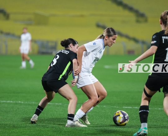 FBL-ISR Women's Premier League – Hapoel Ra'anana (in black) vs. MS Kiryat Gat (in white), February 8, 2026, Ra'anana, Israel.