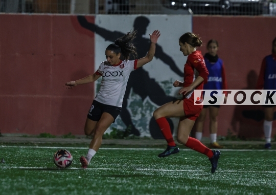 FBL-ISR Women's Premier League – Hapoel Tel Aviv (in red) vs. Hapoel Katamon Jerusalem (in white and black), January 30, 2025, Tel Aviv, Israel.