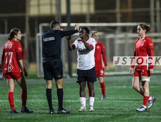 FBL-ISR Women's Premier League – Hapoel Tel Aviv (in red) vs. Hapoel Katamon Jerusalem (in white and black), January 30, 2025, Tel Aviv, Israel.