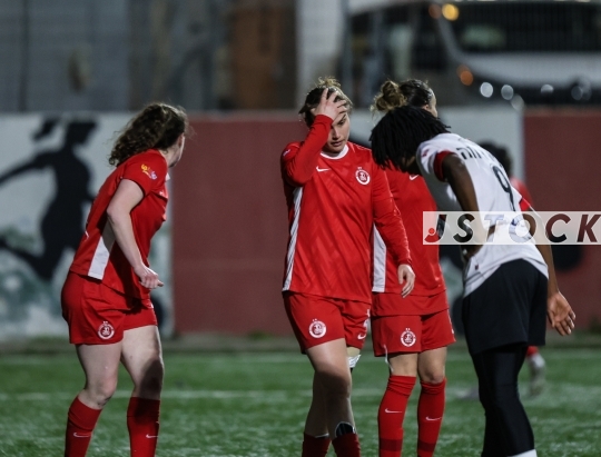 FBL-ISR Women's Premier League – Hapoel Tel Aviv (in red) vs. Hapoel Katamon Jerusalem (in white and black), January 30, 2025, Tel Aviv, Israel.