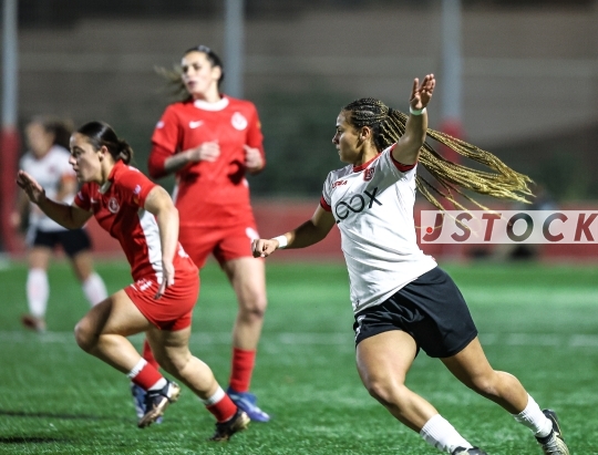 FBL-ISR Women's Premier League – Hapoel Tel Aviv (in red) vs. Hapoel Katamon Jerusalem (in white and black), January 30, 2025, Tel Aviv, Israel.