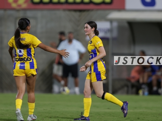 FBL-ISR Women’s Premier League Matchday 1 – Maccabi Tel Aviv (in yellow) vs. AS Ramat HaSharon (in white), September 11, 2025, Ness Ziona Stadium, Ness Ziona, Israel.