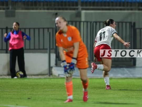 FBL-ISR Women’s Premier League Matchday 13 – MS Kiryat Gat (in blue) vs. Hapoel Katamon Jerusalem (in white and red), January 08, 2026, Toto Regev Stadium, Lod, Israel.