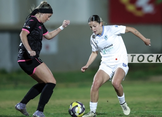 FBL-ISR Women’s Premier League Matchday 14 – Maccabi Holon (in black) vs. MS Kiryat Gat (in white), January 15, 2025, Holon Stadium, Holon, Israel.