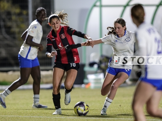 FBL-ISR Women's Premier League Matchday 15 – Hapoel Katamon Jerusalem (in red and black) vs. Hapoel Ra'anana (in white), January 23, 2026, Jerusalem, Israel.