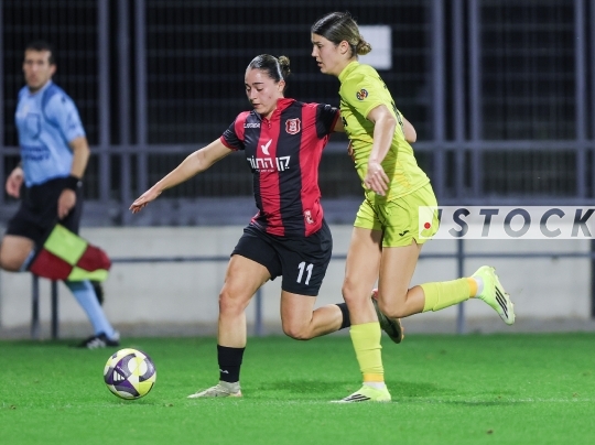 FBL-ISR Women’s Premier League Matchday 19 – Maccabi Kishronot Hadera (in yellow) vs. Hapoel Katamon Jerusalem (in red), February 12, 2026, Hadera Training Ground, Hadera, Israel.