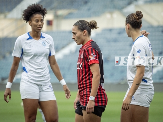 FBL-ISR Women’s Premier League Matchday 26 – Hapoel Katamon Jerusalem (in red with black stripes) vs. MS Kiryat Gat (in white), May 15, 2025, Teddy Stadium, Jerusalem, Israel.