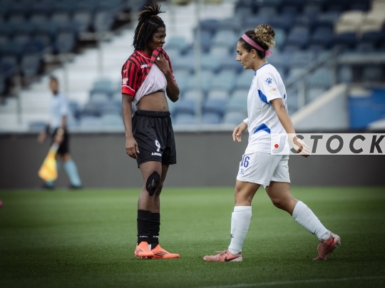 FBL-ISR Women’s Premier League Matchday 26 – Hapoel Katamon Jerusalem (in red with black stripes) vs. MS Kiryat Gat (in white), May 15, 2025, Teddy Stadium, Jerusalem, Israel.
