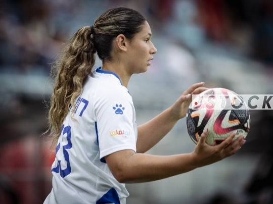 FBL-ISR Women’s Premier League Matchday 26 – Hapoel Katamon Jerusalem (in red with black stripes) vs. MS Kiryat Gat (in white), May 15, 2025, Teddy Stadium, Jerusalem, Israel.