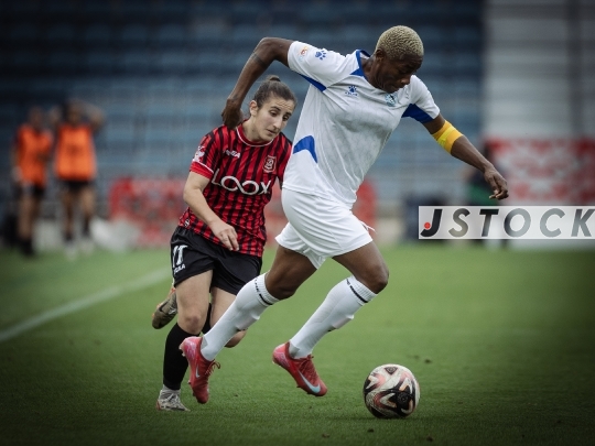 FBL-ISR Women’s Premier League Matchday 26 – Hapoel Katamon Jerusalem (in red with black stripes) vs. MS Kiryat Gat (in white), May 15, 2025, Teddy Stadium, Jerusalem, Israel.