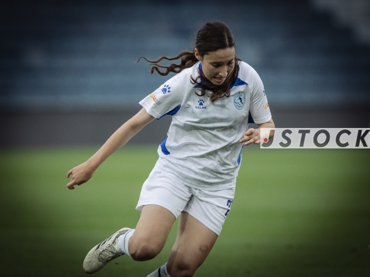 FBL-ISR Women’s Premier League Matchday 26 – Hapoel Katamon Jerusalem (in red with black stripes) vs. MS Kiryat Gat (in white), May 15, 2025, Teddy Stadium, Jerusalem, Israel.