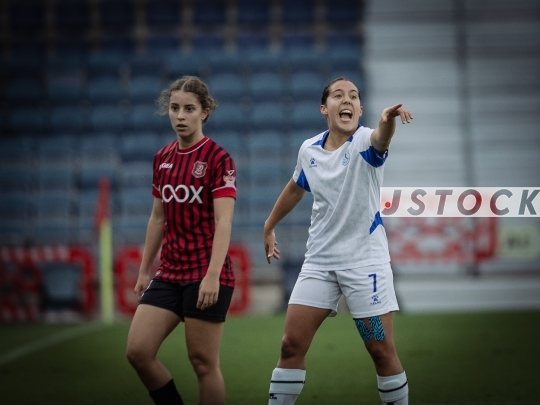 FBL-ISR Women’s Premier League Matchday 26 – Hapoel Katamon Jerusalem (in red with black stripes) vs. MS Kiryat Gat (in white), May 15, 2025, Teddy Stadium, Jerusalem, Israel.