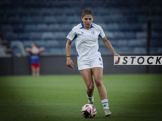 FBL-ISR Women’s Premier League Matchday 26 – Hapoel Katamon Jerusalem (in red with black stripes) vs. MS Kiryat Gat (in white), May 15, 2025, Teddy Stadium, Jerusalem, Israel.