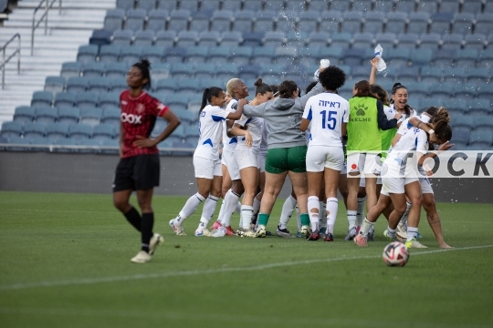 FBL-ISR Women’s Premier League Matchday 26 – Hapoel Katamon Jerusalem (in red with black stripes) vs. MS Kiryat Gat (in white), May 15, 2025, Teddy Stadium, Jerusalem, Israel.