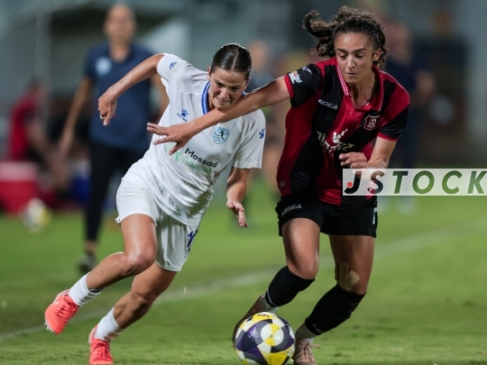 FBL-ISR Women’s Premier League Matchday 6 – Hapoel Katamon Jerusalem (in red with black stripes) vs. MS Kiryat Gat (in white), November 03, 2025, HaYud-Alef Stadium, Ashdod, Israel.