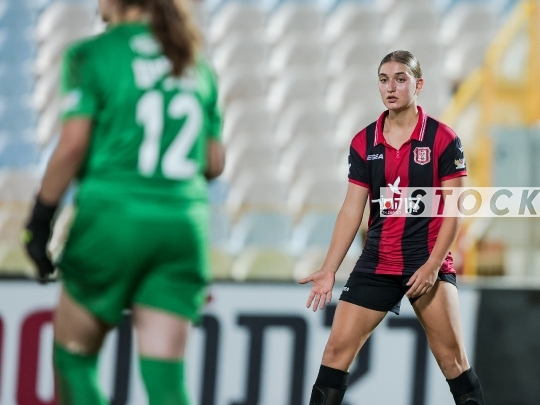 FBL-ISR Women’s Premier League Matchday 6 – Hapoel Katamon Jerusalem (in red with black stripes) vs. MS Kiryat Gat (in white), November 03, 2025, HaYud-Alef Stadium, Ashdod, Israel.