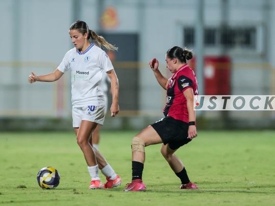 FBL-ISR Women’s Premier League Matchday 6 – Hapoel Katamon Jerusalem (in red with black stripes) vs. MS Kiryat Gat (in white), November 03, 2025, HaYud-Alef Stadium, Ashdod, Israel.
