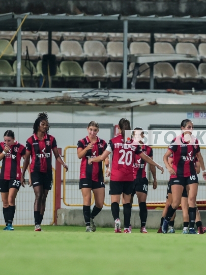 FBL-ISR Women’s Premier League Matchday 6 – Hapoel Katamon Jerusalem (in red with black stripes) vs. MS Kiryat Gat (in white), November 03, 2025, HaYud-Alef Stadium, Ashdod, Israel.