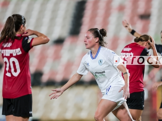 FBL-ISR Women’s Premier League Matchday 6 – Hapoel Katamon Jerusalem (in red with black stripes) vs. MS Kiryat Gat (in white), November 03, 2025, HaYud-Alef Stadium, Ashdod, Israel.