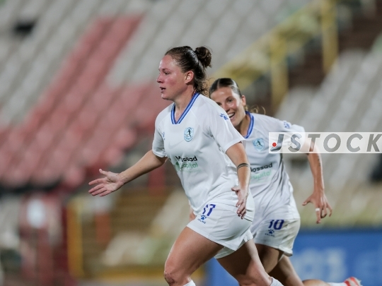 FBL-ISR Women’s Premier League Matchday 6 – Hapoel Katamon Jerusalem (in red with black stripes) vs. MS Kiryat Gat (in white), November 03, 2025, HaYud-Alef Stadium, Ashdod, Israel.
