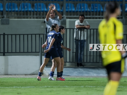 FBL-ISR Women’s Premier League Matchday 7 – MS Kiryat Gat (in blue) vs. Maccabi Holon (in white), March 10, 2026, Toto Regev Stadium, Lod, Israel.