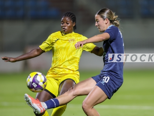 FBL-ISR Women’s Premier League Matchday 8 – MS Kiryat Gat (in blue) vs. Maccabi Kishronot Hadera (in yellow), December 04, 2025, Toto Regev Stadium, Lod, Israel.