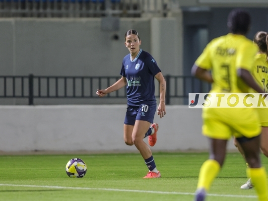 FBL-ISR Women’s Premier League Matchday 8 – MS Kiryat Gat (in blue) vs. Maccabi Kishronot Hadera (in yellow), December 04, 2025, Toto Regev Stadium, Lod, Israel.