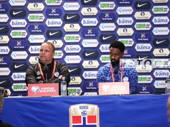 FIFA World Cup 2026 Qualifiers Press Conference featuring Israel National Team Captain Eli Dasa and Head Coach Ran Ben Shimon, October 10, 2025, Ullevaal Stadion, Oslo, Norway.