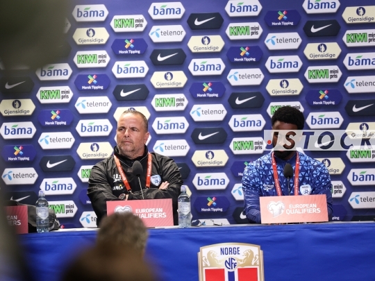 FIFA World Cup 2026 Qualifiers Press Conference featuring Israel National Team Captain Eli Dasa and Head Coach Ran Ben Shimon, October 10, 2025, Ullevaal Stadion, Oslo, Norway.