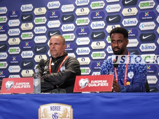 FIFA World Cup 2026 Qualifiers Press Conference featuring Israel National Team Captain Eli Dasa and Head Coach Ran Ben Shimon, October 10, 2025, Ullevaal Stadion, Oslo, Norway.
