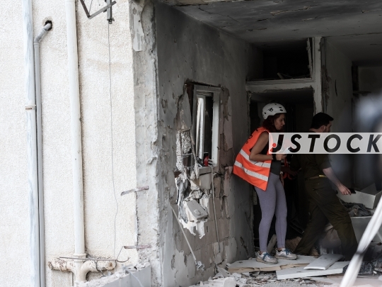 This marks day 19 of the war between Israel, the United States, and Iran. This image depicts the scene of an Iranian MIRV multiple independently targetable reentry vehicle missile strike in central Israel, following an Israeli attack on Iranian gas facilities. No casualties were reported at this location, but extensive damage was caused to a residential building. The incident occurred on March 18, 2026, in Ramat Gan, Israel.Photo by Shaul Greenfeld JStock