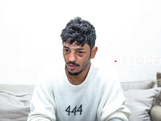 JERUSALEM, ISRAEL - DECEMBER 16, 2025: Qais Haddad, a 21-year-old security team leader from Beit Hanina, at Teddy Stadium. Haddad claims he was brutally attacked and subjected to racial slurs by three plainclothes police officers at the stadium entrance during the match between Beitar Jerusalem and Hapoel Jerusalem. According to Haddad, the assault occurred after he requested the officers to undergo a standard ticket inspection.
